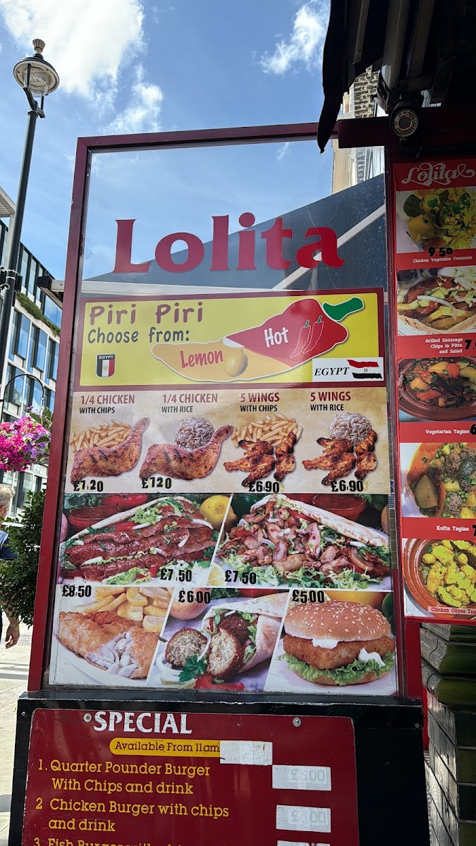 The menu at Lolita London offers a variety of delicious and hearty dishes, catering to both meat lovers and vegetarians. For a satisfying bite, the Quarter Pounder Burger with Chips and Drink is a standout option. The kebab section features a range of options including the flavorful Lamb Doner Kebab, tender Chicken Shawarma, and the delicious skewers like Lamb Shish Kebab and Chicken Shish Kebab. For those craving something different, the Lamb Kofte Kebab provides a savory alternative. If you're in the mood for something lighter, the 1/4 Chicken with Chips or 1/4 Chicken with Rice are simple yet satisfying choices. The restaurant also serves up flavorful tagines like the Chicken & Olives Tagine and the Vegetarian Tagine, offering a hearty yet flavorful taste of Moroccan cuisine. Each dish presents its own unique blend of spices and flavors, ensuring a rich dining experience. The menu's range ensures there's something for everyone, whether you're after a quick bite or a more traditional meal.